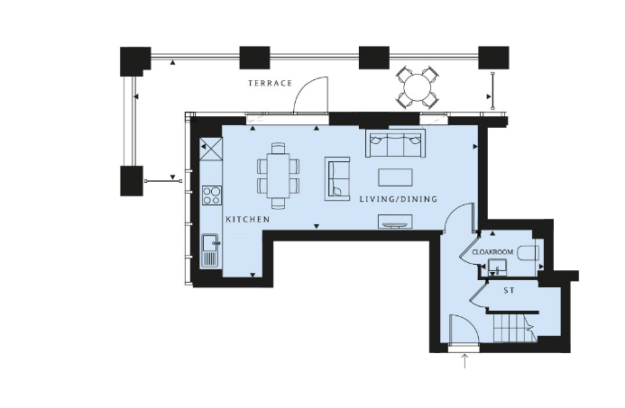 You enter the apartment from the 12th floor, and are greeted with a modern, open plan living / dining area. There is also a stylish fitted kitchen complete with integrated appliances. From here, you can walk out onto to your large, private wraparound terrace, perfect for entertaining guests. The downstairs also benefits from a separate w.c and storage space.