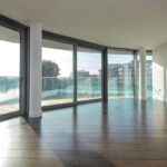 Occupying a prime position on the second floor, the apartment spans a generous layout, perfectly designed for modern living and effortless entertaining. The curved, open-plan reception area is a striking centrepiece, enhanced by floor-to-ceiling windows that showcase uninterrupted views of the river and landscaped gardens. A large private wraparound terrace extends the living space outdoors, inviting serene mornings and sunset gatherings with panoramic backdrops.