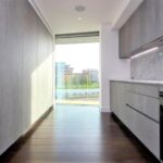 The bespoke kitchen is fully integrated with premium appliances, sleek cabinetry, and a contemporary finish, seamlessly complementing the overall aesthetic of the home.